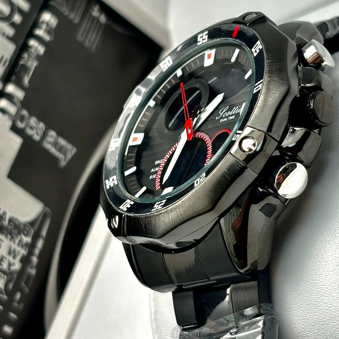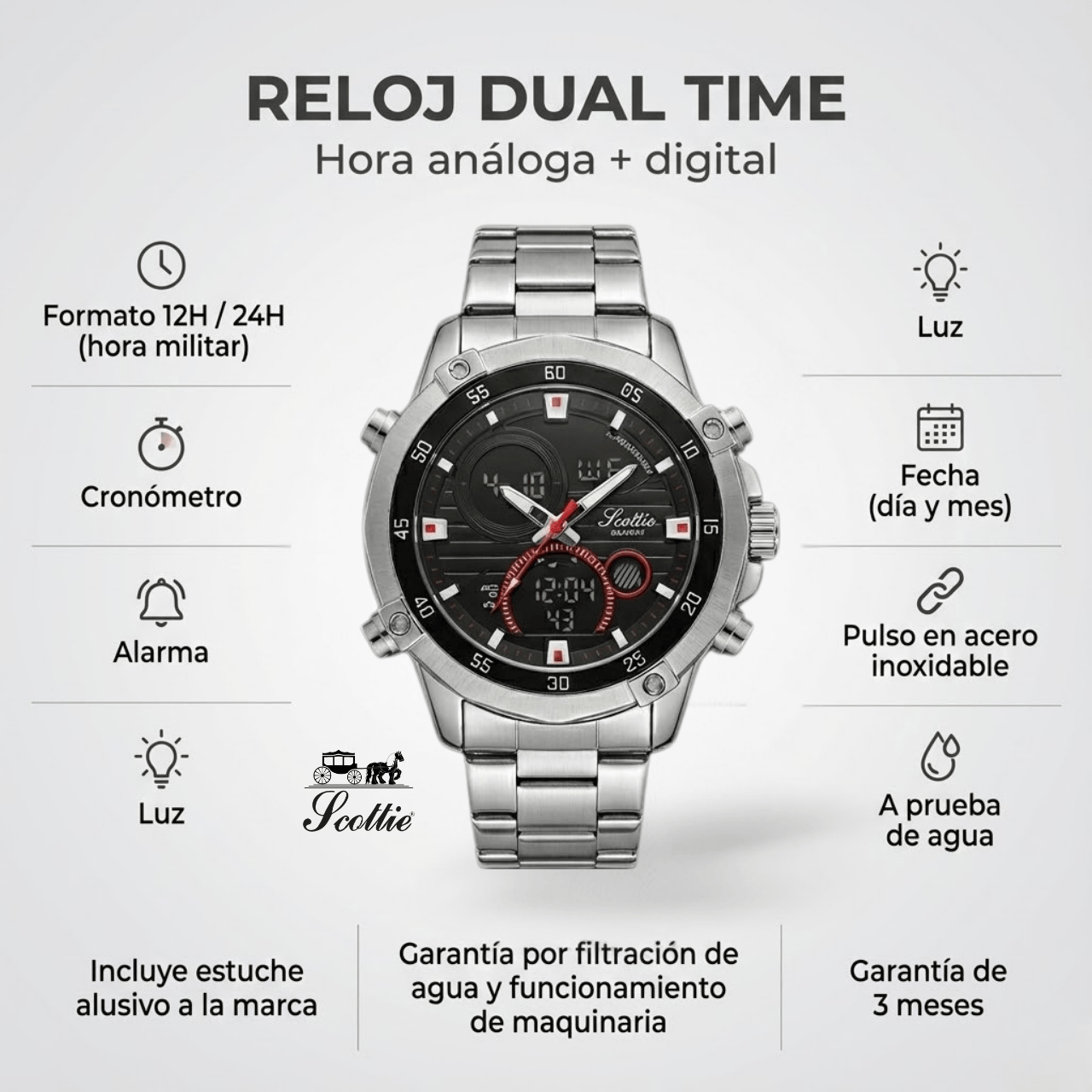 Reloj Scottie 1146 Dual Time en Acero | Cronómetro, Alarma y Resistente al Agua